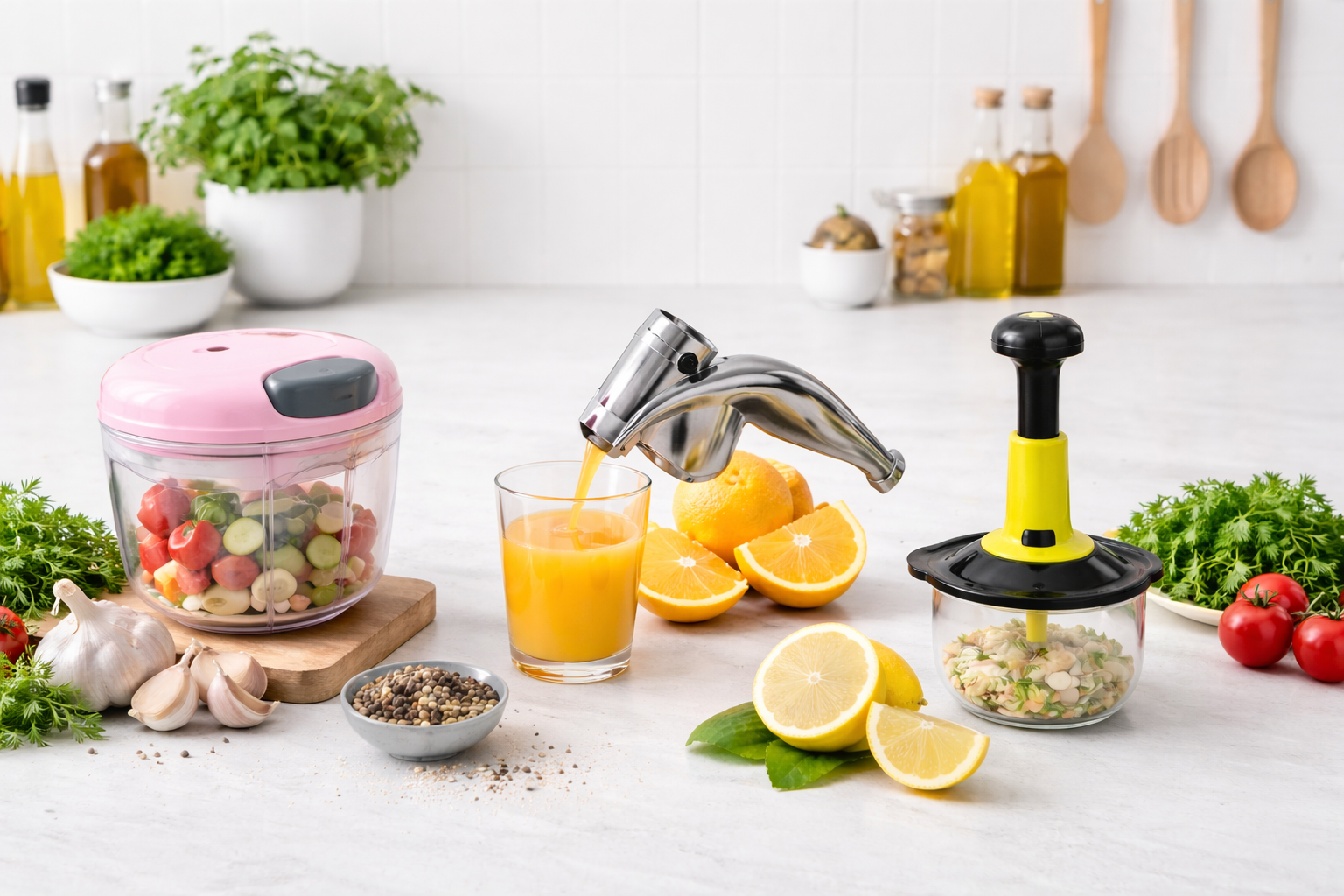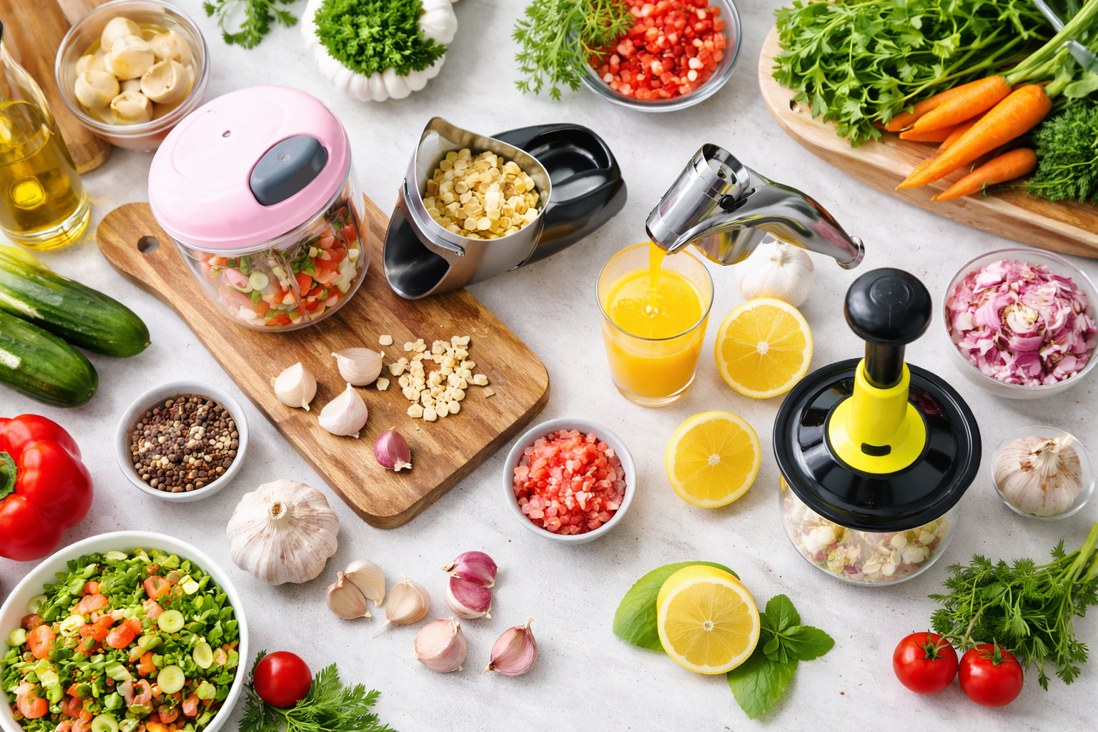 Flashora offers practical kitchen tools such as garlic presses, food choppers, citrus juicers, and other gadgets designed to make cooking easier and faster.